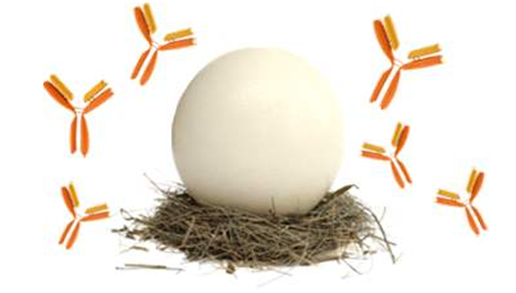 西美杰代理的Exalpha品牌的特色產(chǎn)品是雞多克隆抗體IgY,雞不僅可以在血清中產(chǎn)生免疫球蛋白,在蛋黃中也能產(chǎn)生高滴度的免疫球蛋白。因此,Exalpha只需要收集雞蛋就可以從抗原免疫過(guò)的母雞身上獲得抗體,避免了通常所用的采血方式來(lái)獲取抗體。與傳統(tǒng)的哺乳動(dòng)物產(chǎn)生的多克隆抗體相比,雞多克隆抗體IgY有諸多優(yōu)勢(shì):