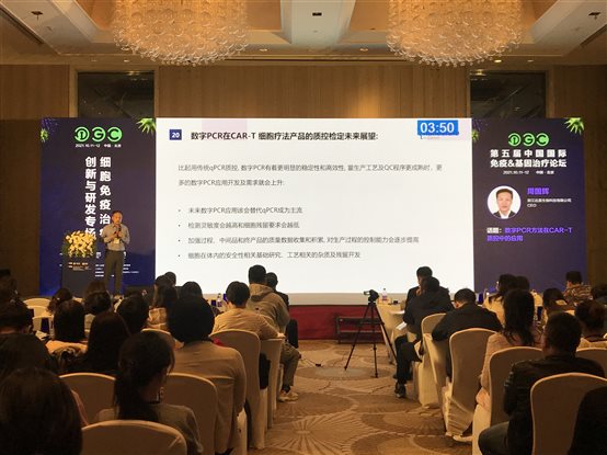本次論壇西美杰特邀達(dá)普生物周國(guó)輝博士為與會(huì)人員帶來了“數(shù)字PCR方法在CAR-T質(zhì)控中的應(yīng)用”的專題講座。周國(guó)輝博士開發(fā)了一種基于數(shù)字PCR方法的儀器及微流控芯片系統(tǒng),從質(zhì)量控制的角度,實(shí)現(xiàn)對(duì)CAR-T細(xì)胞等生物制品的質(zhì)控要求。