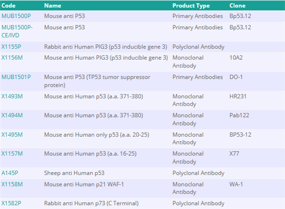 西美杰代理的Nordic-MUbio品牌提供了大量與p53蛋白相關(guān)的抗體產(chǎn)品,這些產(chǎn)品在癌癥領(lǐng)域的研究中發(fā)揮著重要作用。這些抗體的研究方向涵蓋了細(xì)胞周期、癌癥、細(xì)胞結(jié)構(gòu)、腫瘤學(xué)、細(xì)胞凋亡、感染性疾病、CD maker、細(xì)胞粘連、酶、細(xì)胞外基質(zhì)和干細(xì)胞等多個(gè)領(lǐng)域。為了方便客戶進(jìn)行搜索,小編整理了部分與p53蛋白相關(guān)的抗體產(chǎn)品列表: