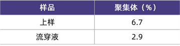 在該應(yīng)用案例中,研究人員使用CHO細(xì)胞表達(dá)IgG型單克隆抗體,料液經(jīng)過Protein A親和層析和陽離子交換層析純化后,在較低的pH和較高的電導(dǎo)率條件下孵育,誘導(dǎo)產(chǎn)生高含量的聚集體,再以流穿模式上樣HCPureTM,收集流穿液和淋洗液,檢測(cè)聚集體含量。