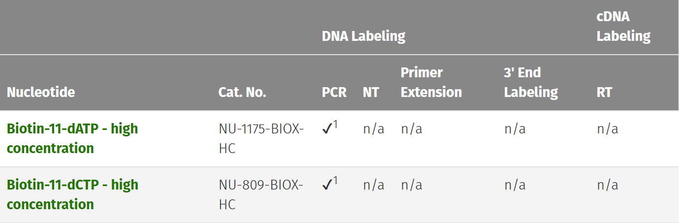 西美杰代理的Jena Bioscience品牌現(xiàn)在能提供用于DNA和RNA非放射標(biāo)記的濃度為10mM的Cy3-,Cy5- 和濃度為5mM的Biotin- 標(biāo)記的核苷酸。