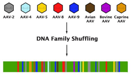 AAV共有12個(gè)血清型,其中AAV1-6是從人類組織中分離獲得,并且具有明確的的抗體反應(yīng)性,是目前常用的經(jīng)典AAV載體。盡管不同血清型AAV都具有正二十面體結(jié)構(gòu),但其衣殼蛋白在序列與空間構(gòu)象上的多樣性,使得AAV與不同細(xì)胞表面受體親和力及組織嗜性存在顯著差異。在感染嗜性方面,AAV-2的感染譜較廣應(yīng)用較多,AAV-1在骨骼肌中的轉(zhuǎn)導(dǎo)效率較高,AAV-3易于轉(zhuǎn)導(dǎo)巨核細(xì)胞,AAV-5和AAV-6感染呼吸道上皮細(xì)胞的優(yōu)勢較為顯著。因此,根據(jù)AAV不同血清型在組織感染性的相對特異性,可以用于在針對不同靶向組織的基因治療中尋求最佳的AAV載體類型與組合。除了常見的六個(gè)血清型AAV之外,Cell Biolabs還提供兩種重組型AAV包裝質(zhì)粒即AAV-DJ與AAV-DJ-8,如下圖所示,這兩種AAV的Rep-Cap基因是由多個(gè)野生型AAV的結(jié)構(gòu)基因重組而來,與其他野生型相比,AAV-DJ在體外細(xì)胞轉(zhuǎn)導(dǎo)效率更高,AAV-DJ-8則更適用于體內(nèi)感染實(shí)驗(yàn)。