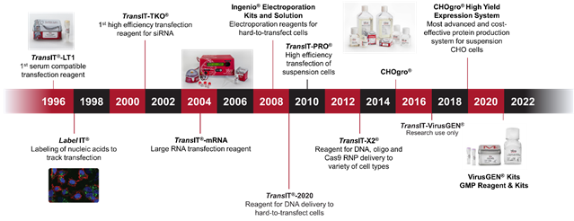 西美杰代理的美國Mirus公司成立于1995年,是世界上很早開發(fā)高效、低毒轉(zhuǎn)染試劑的公司,同時也是該類試劑的主要供應商之一。其產(chǎn)品線涵蓋化學轉(zhuǎn)染試劑、電轉(zhuǎn)染產(chǎn)品、病毒生產(chǎn)和轉(zhuǎn)導產(chǎn)品,適用于基因功能研究、蛋白生產(chǎn)、病毒載體生產(chǎn)和動物模型構(gòu)建等領(lǐng)域。Mirus被公認為轉(zhuǎn)染試劑開發(fā)的領(lǐng)跑者,其許多杰出成果獲得世界公認與廣大用戶的好評。