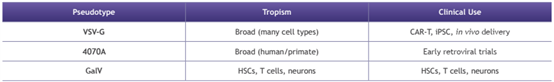 重組慢病毒可以通過不同的包膜蛋白來提高轉(zhuǎn)導(dǎo)效率和改變特異性,從而直接影響下游純化策略。